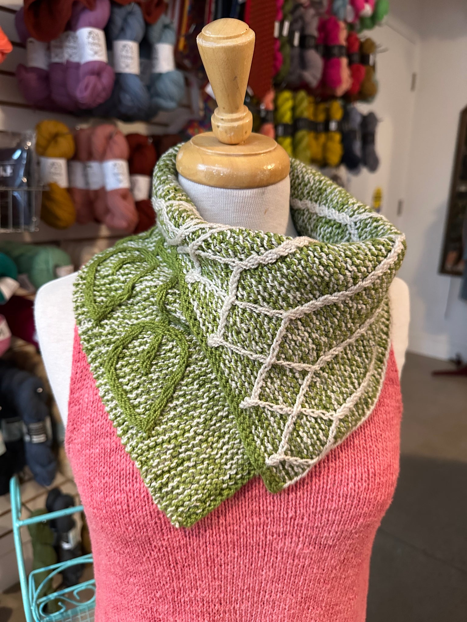 Sample Sale: Cowl, Mary Martin, green leaves kerchief