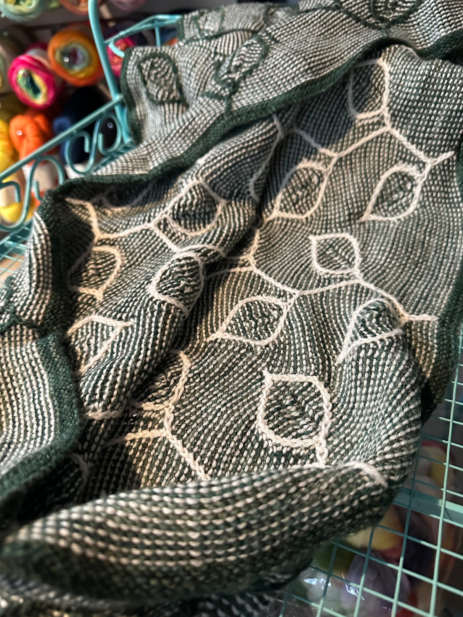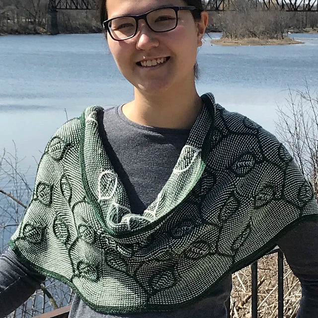 Sample Sale: Cowl, Mary Martin, green/white leaves
