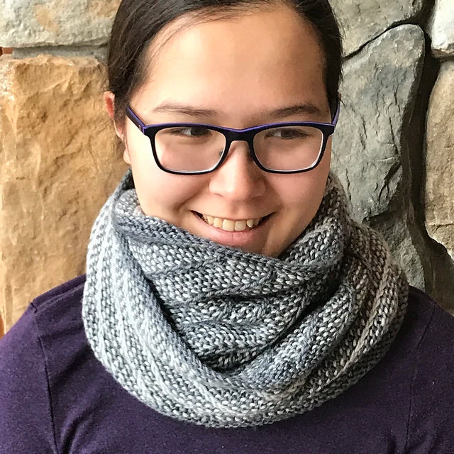 Sample Sale: Cowl, Mary Martin, grey diagonal