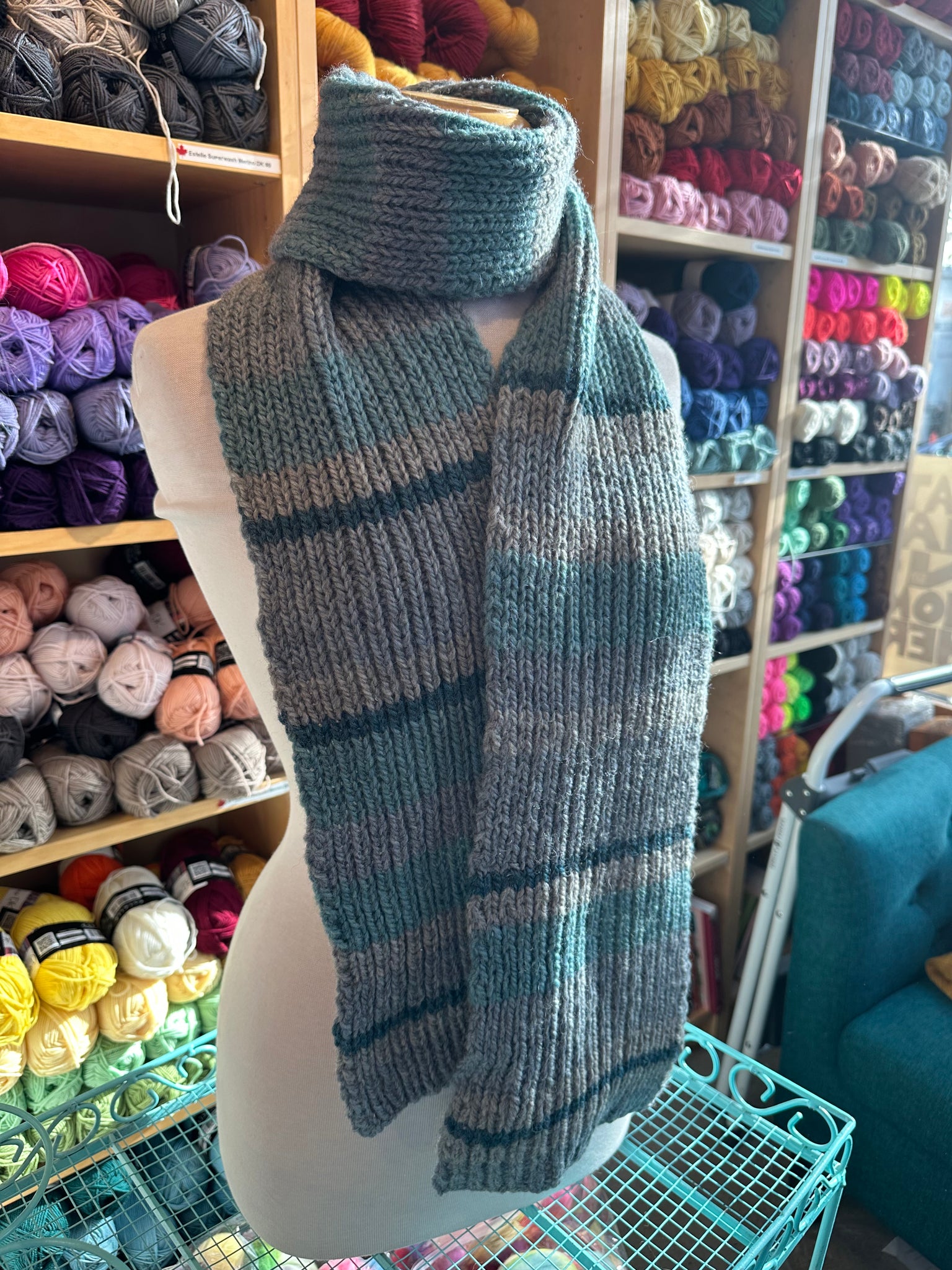 Sample Sale: Scarf, blue/grey/green heather
