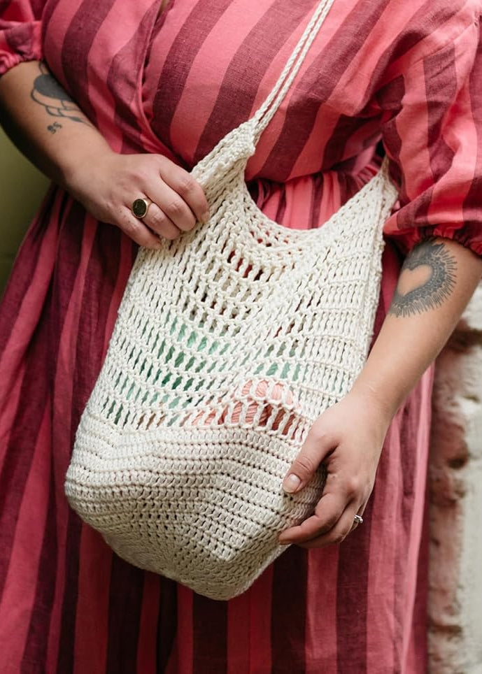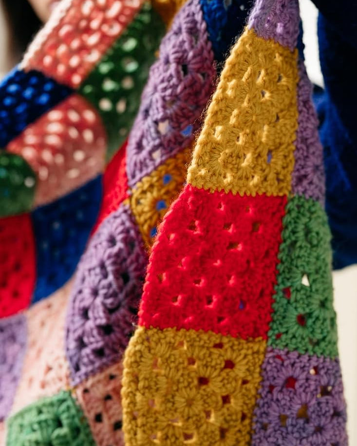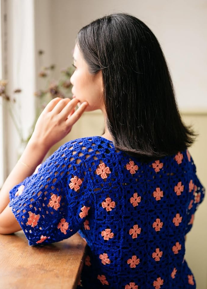 Pom Pom is well-known for their exciting use of color, and these new crochet designs do not disappoint. Start with an easy throw blanket, scarf, or tote, then complete your new crocheted collection by stitching up a cute hat, a sweet cowl, pullover, crop top, and granny square creations galore.