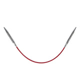 The 9" (23 cm) Knit RED line of surgical stainless steel circulars have a smooth, satin-sheen finish and memory-free, multi-strand, steel cable coated with red nylon allowing yarn to slide right over. Needle size is permanently laser imprinted on each circular. Precisely machined tips and joins are just spectacular!
